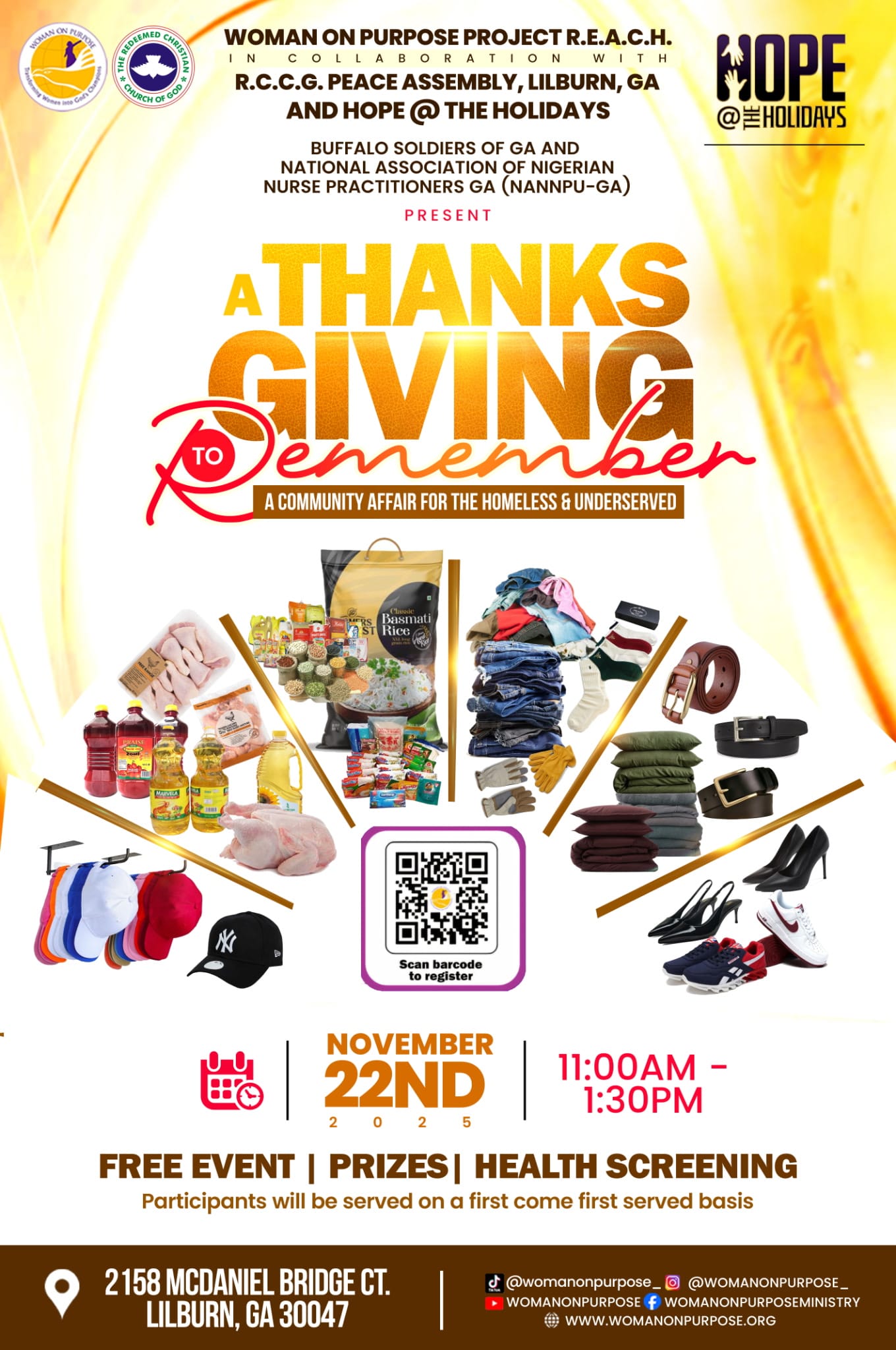 Woman on Purpose Project R.E.A.CH in collaboration with RCCG, Peace, Assembly, Lilburn, GA, and Hope @the Holidays,